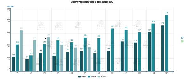 图3:全国PPP项目月度成交同比增长情况(项目数量)