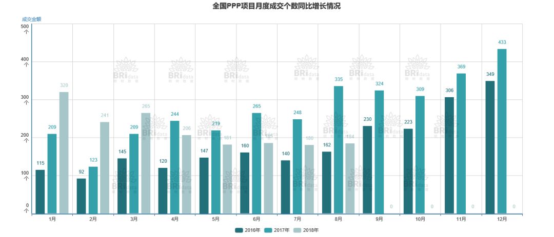 图3:全国PPP项目月度成交同比增长情况(项目数量)