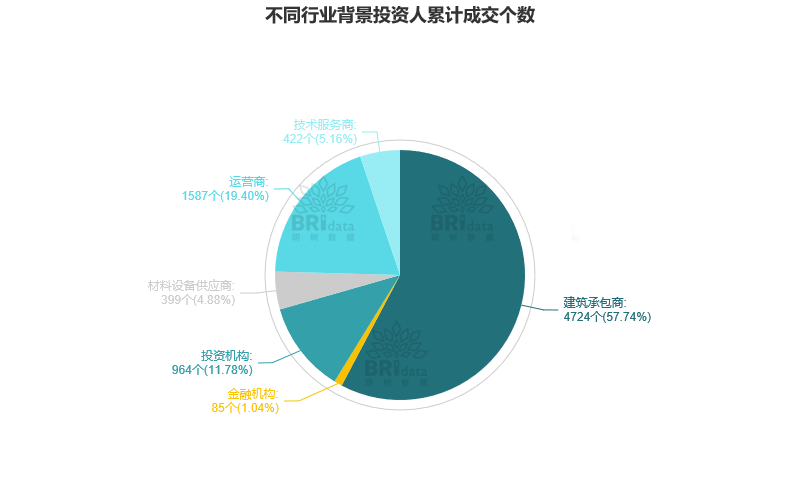 我们将社会资本按照行业背景和所有制背景进行了分类,不同社会资本中标金额和中标个数数据分别如下: