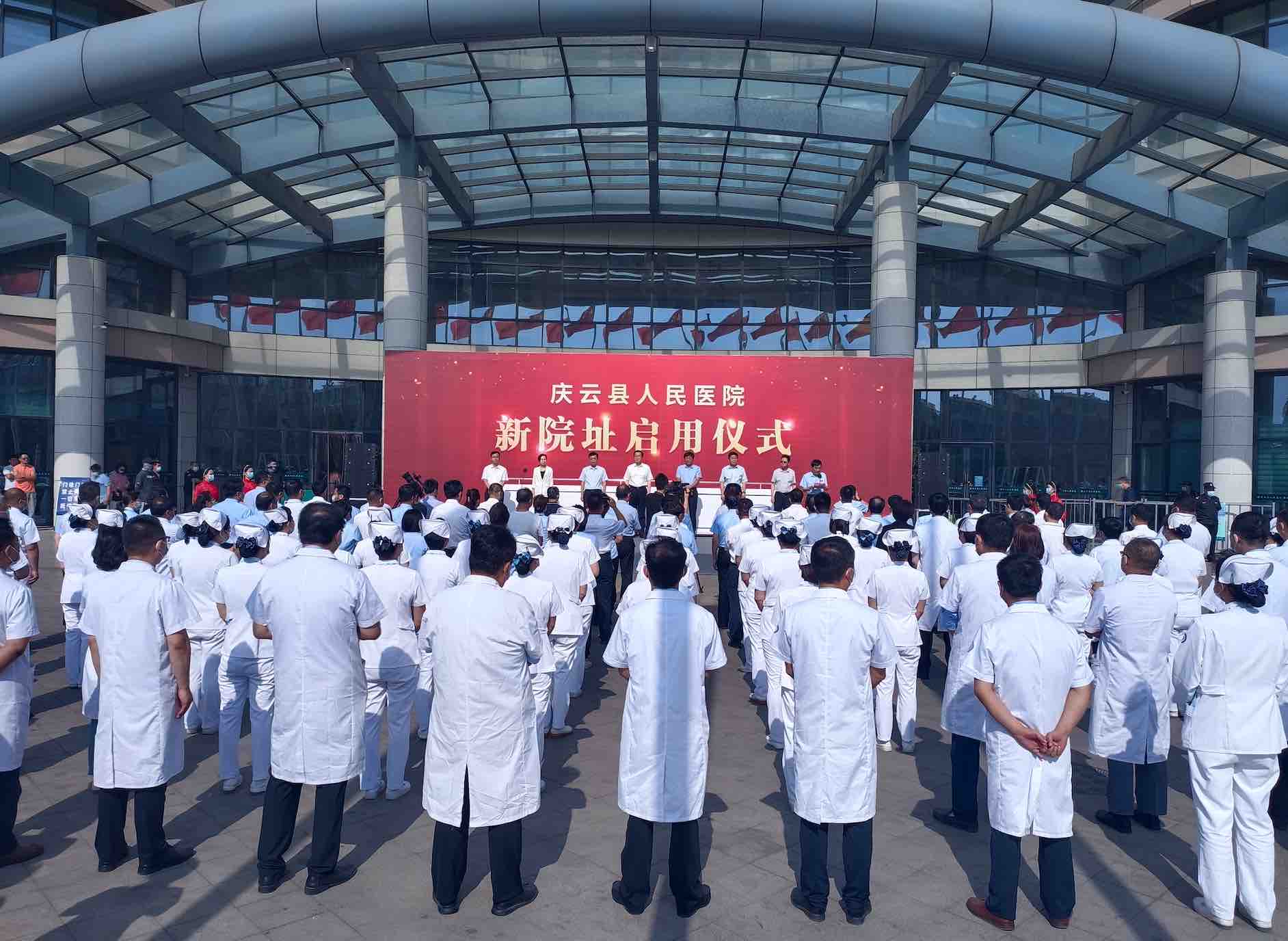 庆云县人民医院建设项目占地120亩,建设内容包括门诊医技病房综合楼、后勤服务楼、感染楼及其他辅助设施,总建筑面积93300平米,设计床位800张。2022年5月6日,根据庆云县委、县政府部署,庆云县人民医院整体搬迁进驻项目现场,负责提供医疗运营服务,目前各项工作平稳有序。