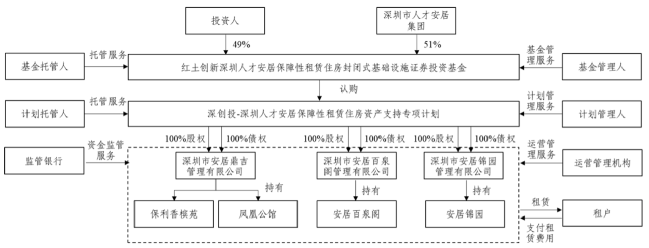 项目资产为安居百泉阁项目、安居锦园项目、保利香槟苑项目和凤凰公馆项目4个保障性租赁住房项目,分别位于深圳市福田区、罗湖区、大鹏新区和坪山区。项目建筑面积合计13.47万平方米,共1,830套保障性租赁住房及其配套。